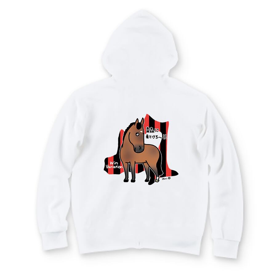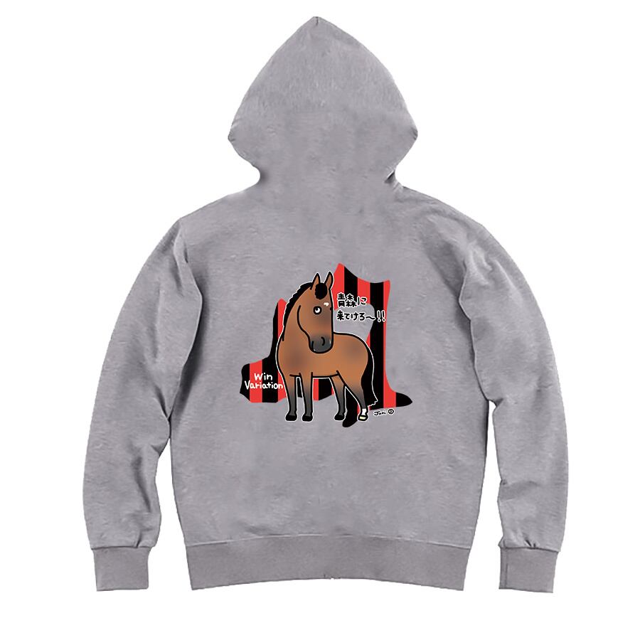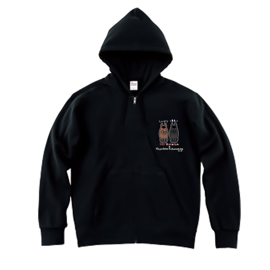 バックには『ウインバリアシオン』、フロントにはウインバリアシオン&ハヤテノフクノスケのかわいいイラストがデザインされたジップアップパーカーです!